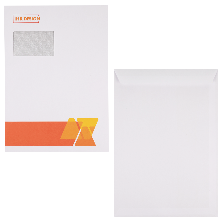 Bei uns erhalten Sie hochwertige Briefumschläge mit einseitigem Druck in verschiedenen Formaten und Auflagen. Dabei haben Sie bei jedem Format die Wahl zwischen Kuverts mit Fenster und Briefhüllen ohne Fenster. Die Briefumschläge erhalten Sie in den Formaten DIN lang quer, DIN C5, DIN C4, DIN B4 oder in Sonderformaten entweder nass- oder haftklebend – hier ist sicher auch für Ihren Büroalltag oder Ihre private Post das Richtige dabei! Auch Maschinenkuvertierhüllen erhalten Sie bei uns einseitig bedruckt. Selbstverständlich sind die Umschläge beschreibbar und geeignet für Inkjet- und Laserdrucker.